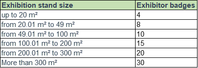 Exhibitors are entitled a certain number of free exhibitor badges, dependent upon the size of their stand:
